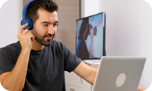 A tecnologia ao seu favor! Oferecemos tradução simultânea remota através de plataformas populares como Zoom, Microsoft Teams e Google Meet. Uma solução eficiente e cada vez mais requisitada para eventos online, garantindo fluidez e precisão na comunicação global.